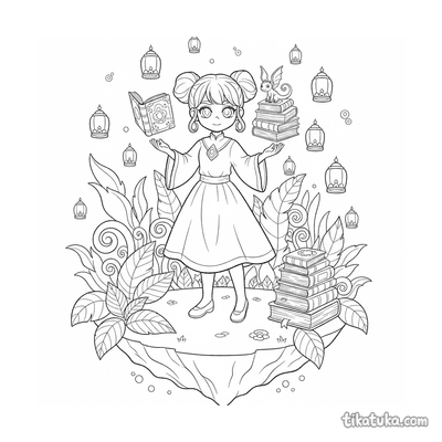 In dieser Sammlung begegnen Kinder Wesen aus fernen Zauberwelten – winzigen Feen-Architektinnen auf riesigen Seerosen, Steingolemen mit Vogelnestern in den Händen und jungen Zauberlingen in geheimnisvollen Bibliothekstürmen. Die Szenen reichen vom Pilzhaus des einsamen Gnoms bis zur schwebenden Inselbibliothek mit ihrem fliegenden Bibliothekar. Jede Zeichnung erzählt eine kleine Geschichte aus einem Ort, den es nur in der Fantasie gibt.
