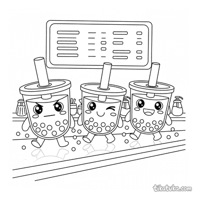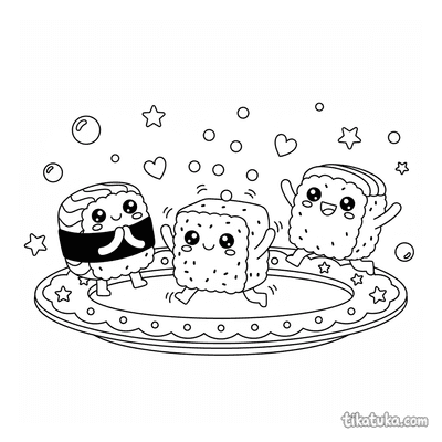 Hier dreht sich alles um die fröhliche Kawaii-Welt des Essens: Boba-Becher balancieren auf Theken, Donut-Duos marschieren im Gleichschritt, und Sushi-Rollen feiern ausgelassen auf dem Teller. Dazu gibt es Obsttörtchen, Pfannkuchenstapel, Ramen-Schüsseln, Mochi-Figuren und ganze Bubble-Tea-Paraden – alle mit den typischen großen Kawaii-Augen und breitem Grinsen. Die Motive reichen von einzelnen Charakteren bis hin zu belebten Picknick- und Bühnenszenen mit mehreren Figuren.