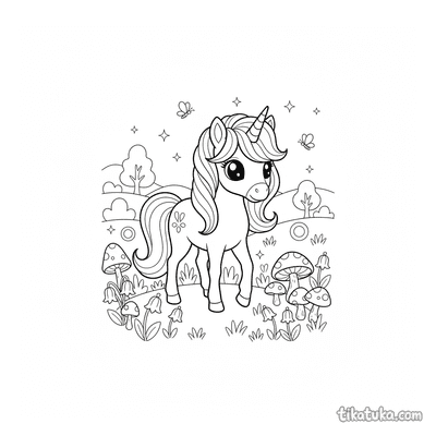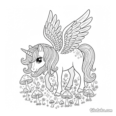 Ponys, Einhörner und Pegasusfiguren gehören zu den beliebtesten Motiven bei Kindern. Die Szenen reichen von einer Prinzessin mit Blumenkrone über einen Pegasus auf dem Berggipfel bis hin zu einem Fohlen im Stroh. Ob Abenteuer, Magie oder Alltag – die Motive erzählen kleine Geschichten, die Kinder beim Ausmalen begleiten.