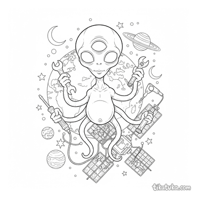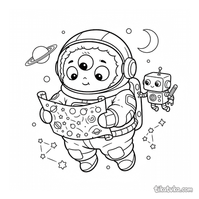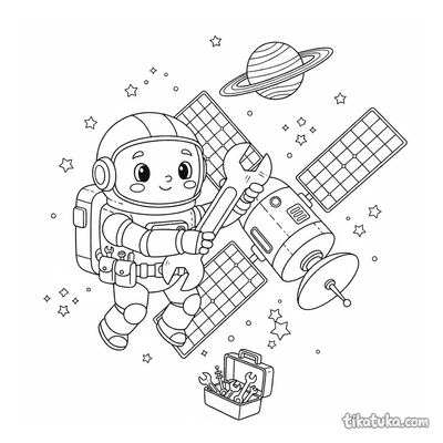 Mit 272 Bildern gehört dies zu den umfangreichsten Weltraum-Ausmalbilder-Sammlungen für Kinder. Die Motive decken das gesamte Spektrum der Raumfahrt ab: klassische Raketen und Satelliten, Astronauten bei der Arbeit im Orbit, Mondlandungen mit Flagge, Cartoon-Roboter im Einsatz und skurrile Weltraumwesen. Jedes Bild ist als klare Schwarzweiß-Zeichnung mit sauberen Umrissen angelegt, sodass sich auch jüngere Kinder problemlos ans Ausmalen wagen können.