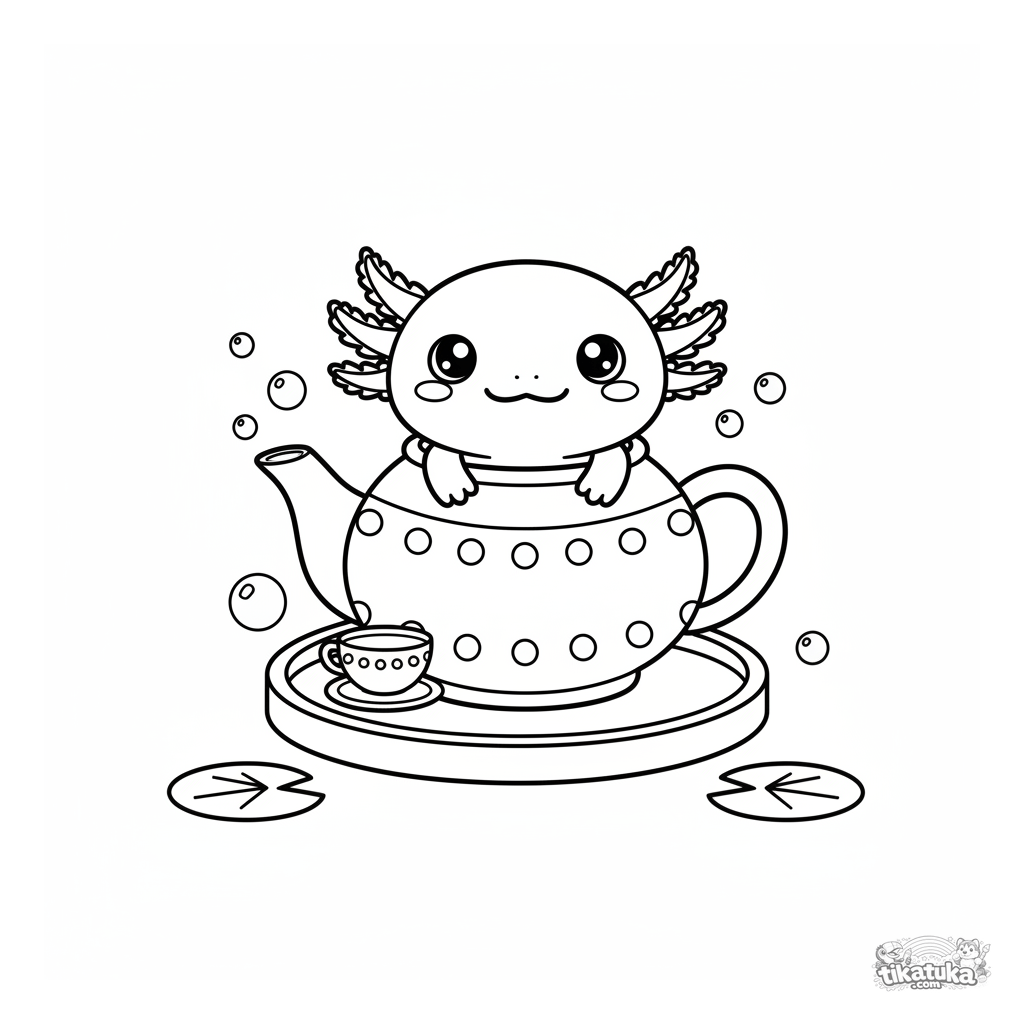 Ein Ausmalbild zum Thema Axolotl und Kawaii-Wasser mit Detailgrad Einfach. Es passt für das Alter 2-3 Jahre, lässt sich gut zu Hause drucken und sofort online öffnen.