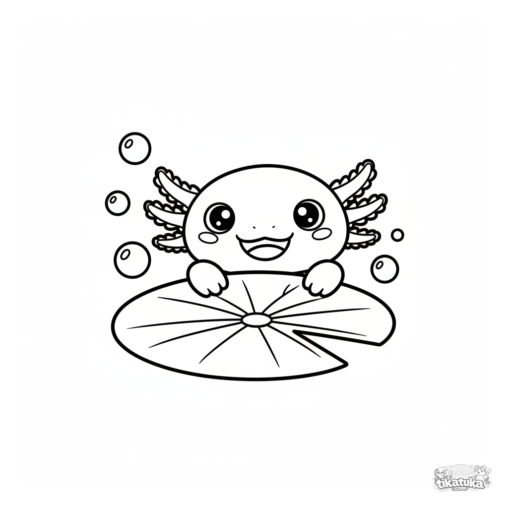 Ein Ausmalbild zum Thema Axolotl und Kawaii-Wasser mit Detailgrad Einfach. Es passt für das Alter 2-3 Jahre, lässt sich gut zu Hause drucken und sofort online öffnen.