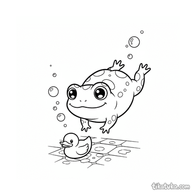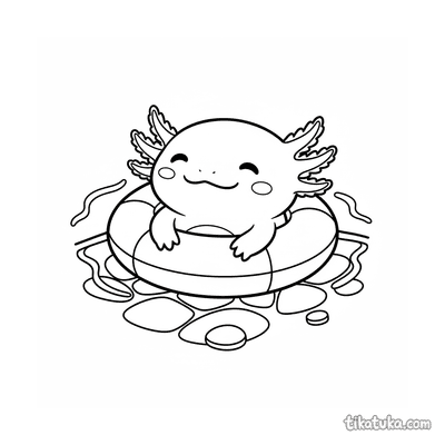 Ein Ausmalbild zum Thema Axolotl und Kawaii-Wasser mit Detailgrad Mittel. Es passt für das Alter 4-6 Jahre, lässt sich gut zu Hause drucken und sofort online öffnen.