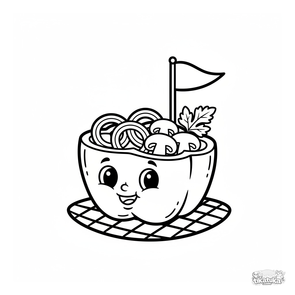 Ein Ausmalbild zum Thema Essen mit Detailgrad Einfach. Es passt für das Alter 2-3 Jahre, lässt sich gut zu Hause drucken und sofort online öffnen.