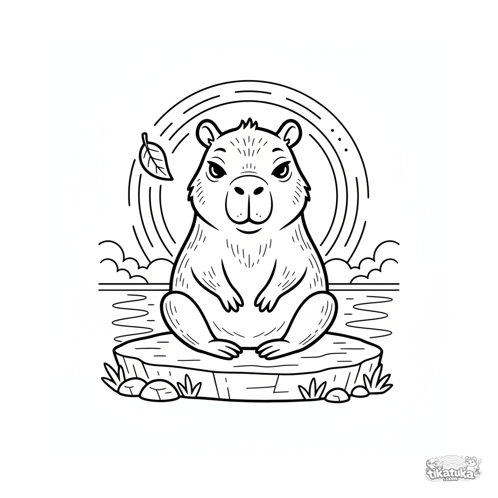 Ein Ausmalbild zum Thema Capybaras und Entspannung mit Detailgrad Mittel. Es passt für das Alter 7-9 Jahre, lässt sich gut zu Hause drucken und sofort online öffnen.
