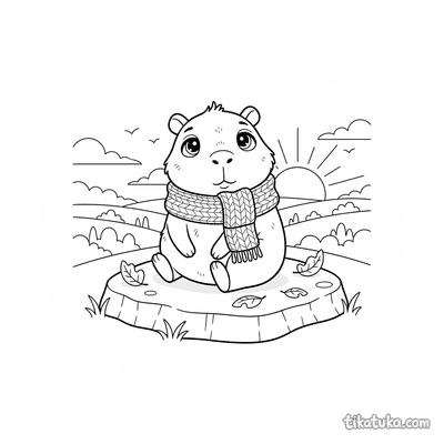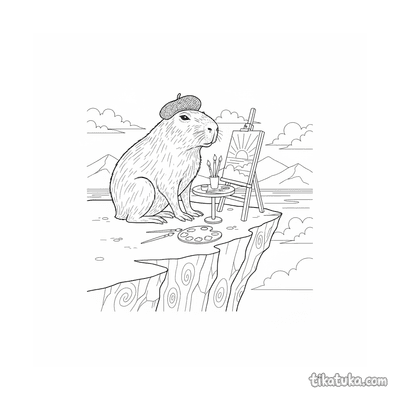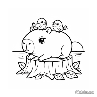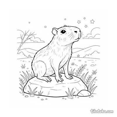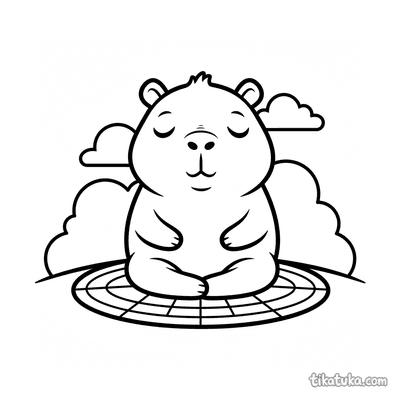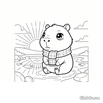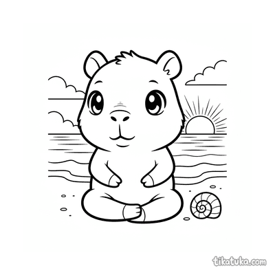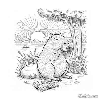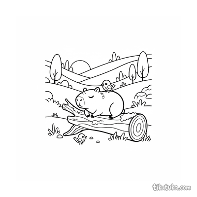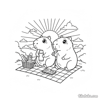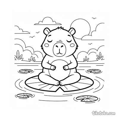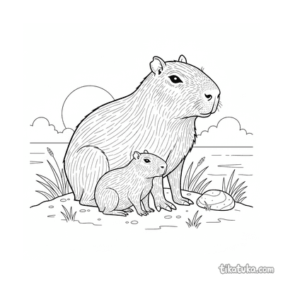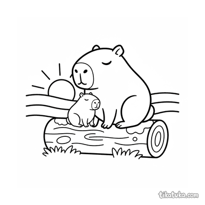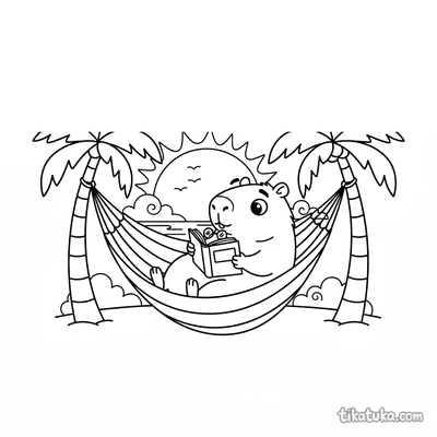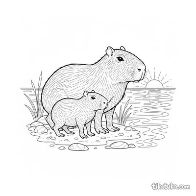 Ein Ausmalbild zum Thema Capybaras und Entspannung mit Detailgrad Einfach. Es passt für das Alter 2-3 Jahre, lässt sich gut zu Hause drucken und sofort online öffnen.