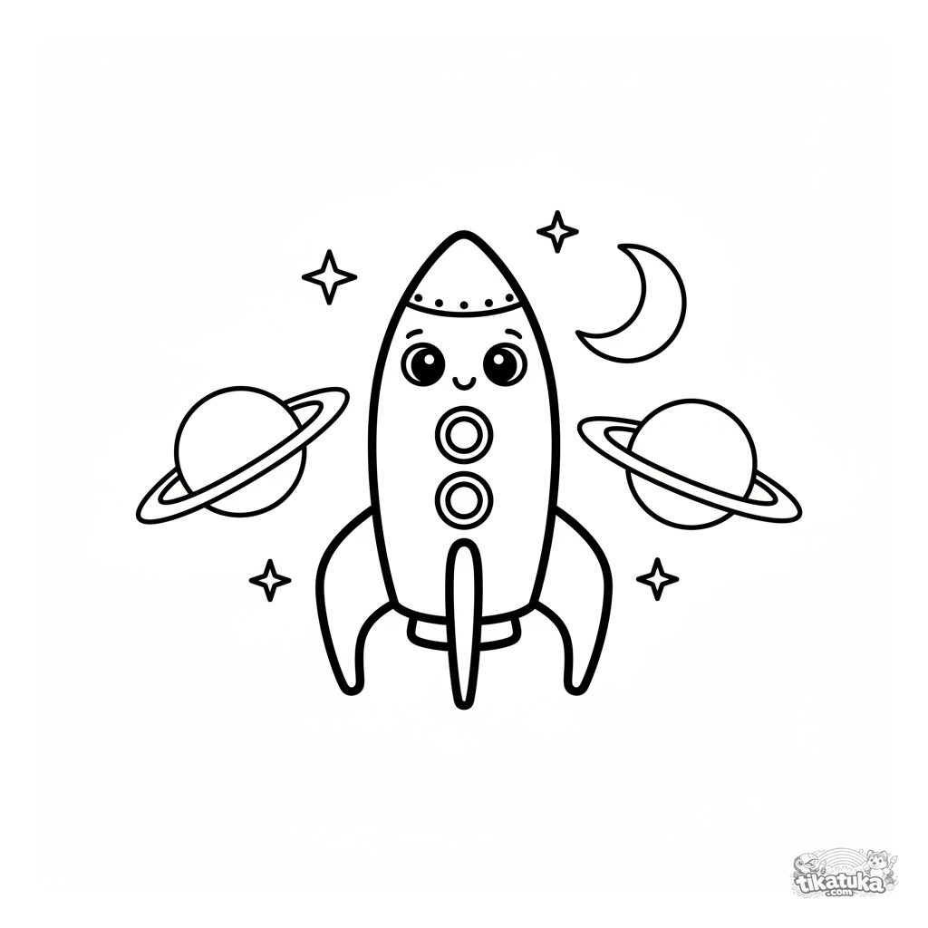 Ein Ausmalbild zum Thema Weltraum mit Detailgrad Einfach. Es passt für das Alter 2-3 Jahre, lässt sich gut zu Hause drucken und sofort online öffnen.