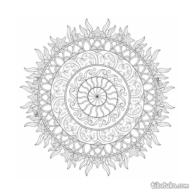 Ein Ausmalbild zum Thema Mandalas mit Detailgrad Schwer. Es passt für das Alter 10+ Jahre, lässt sich gut zu Hause drucken und sofort online öffnen.