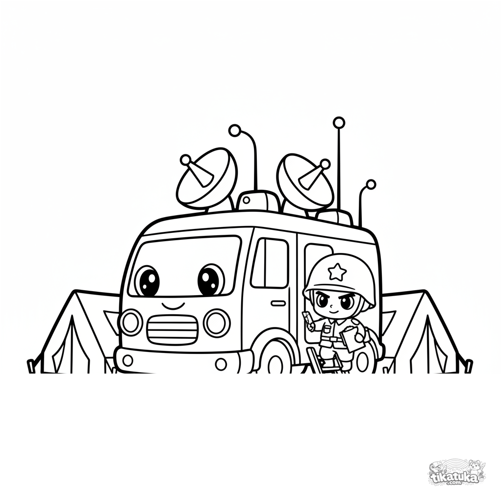 Ein Ausmalbild zum Thema Militärfahrzeuge mit Detailgrad Einfach. Es passt für das Alter 2-3 Jahre, lässt sich gut zu Hause drucken und sofort online öffnen.