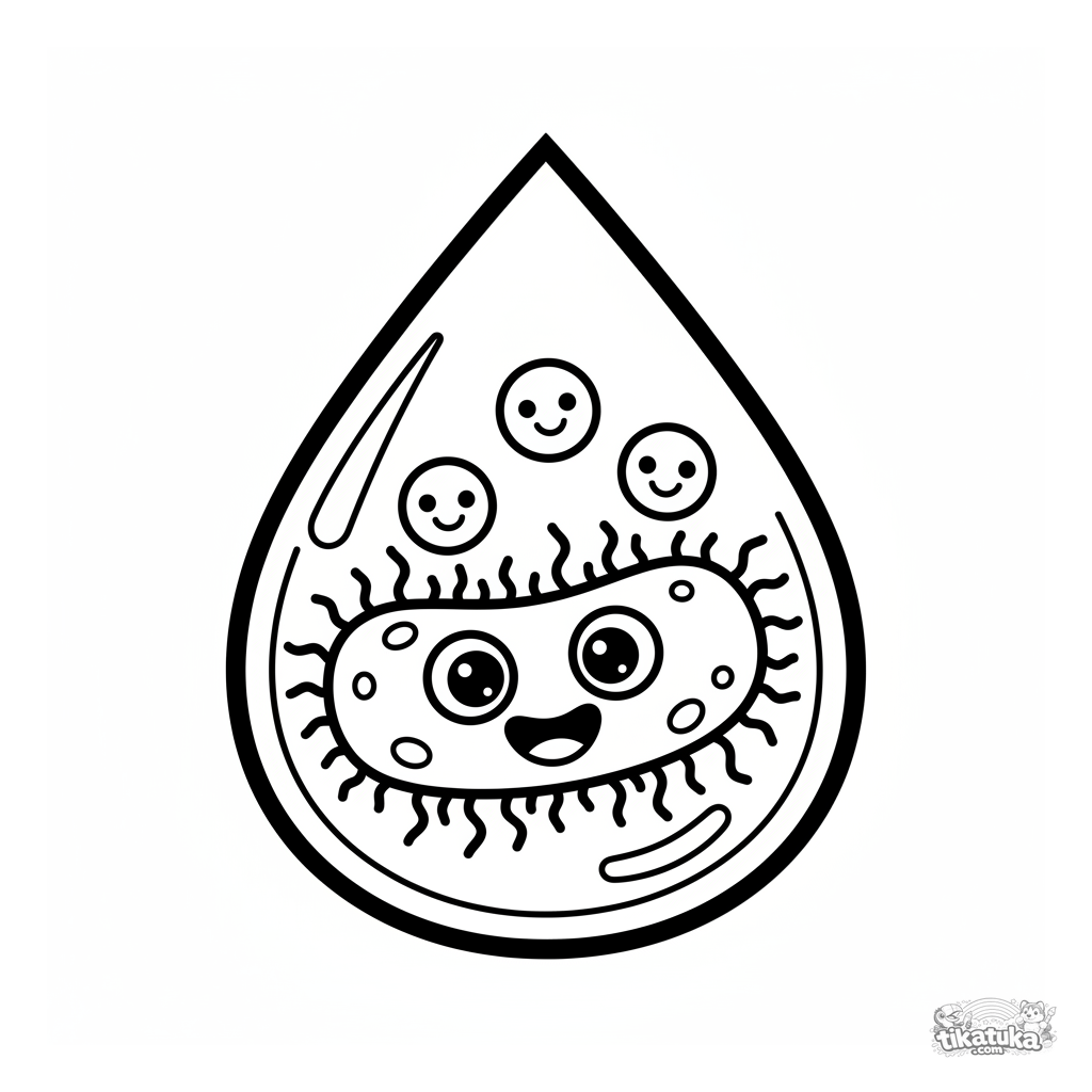 Ein Ausmalbild zum Thema Mikroben mit Detailgrad Einfach. Es passt für das Alter 2-5 Jahre, lässt sich gut zu Hause drucken und sofort online öffnen.