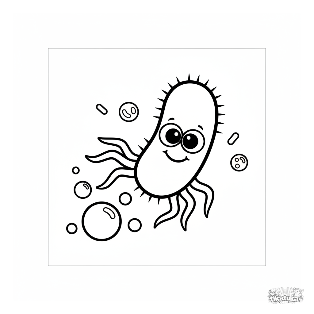 Ein Ausmalbild zum Thema Mikroben mit Detailgrad Einfach. Es passt für das Alter 2-3 Jahre, lässt sich gut zu Hause drucken und sofort online öffnen.