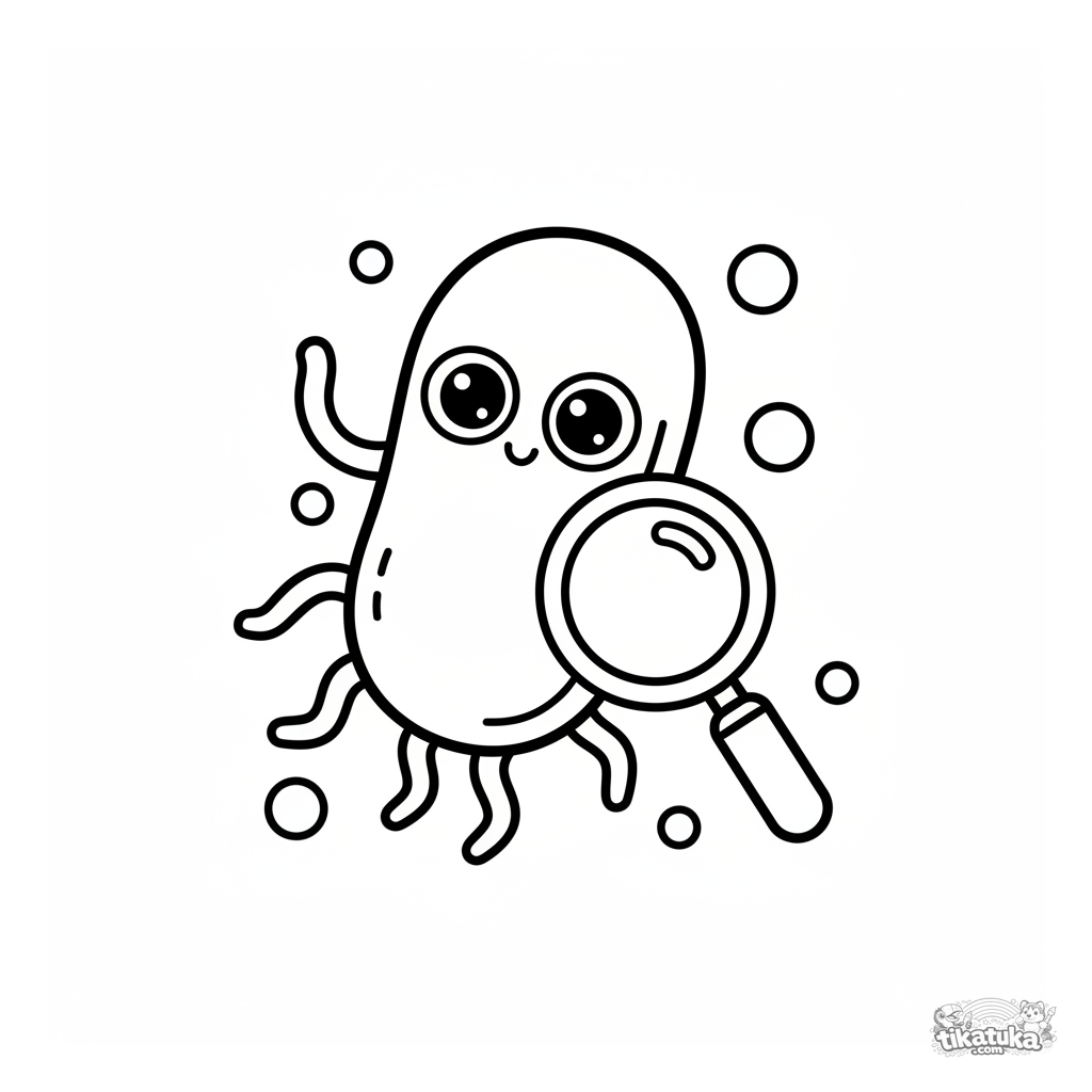 Ein Ausmalbild zum Thema Mikroben mit Detailgrad Einfach. Es passt für das Alter 2-3 Jahre, lässt sich gut zu Hause drucken und sofort online öffnen.