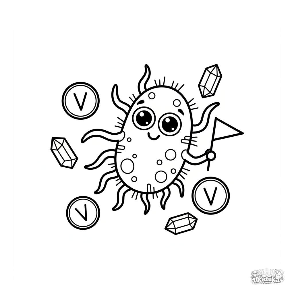 Ein Ausmalbild zum Thema Mikroben mit Detailgrad Einfach. Es passt für das Alter 2-3 Jahre, lässt sich gut zu Hause drucken und sofort online öffnen.