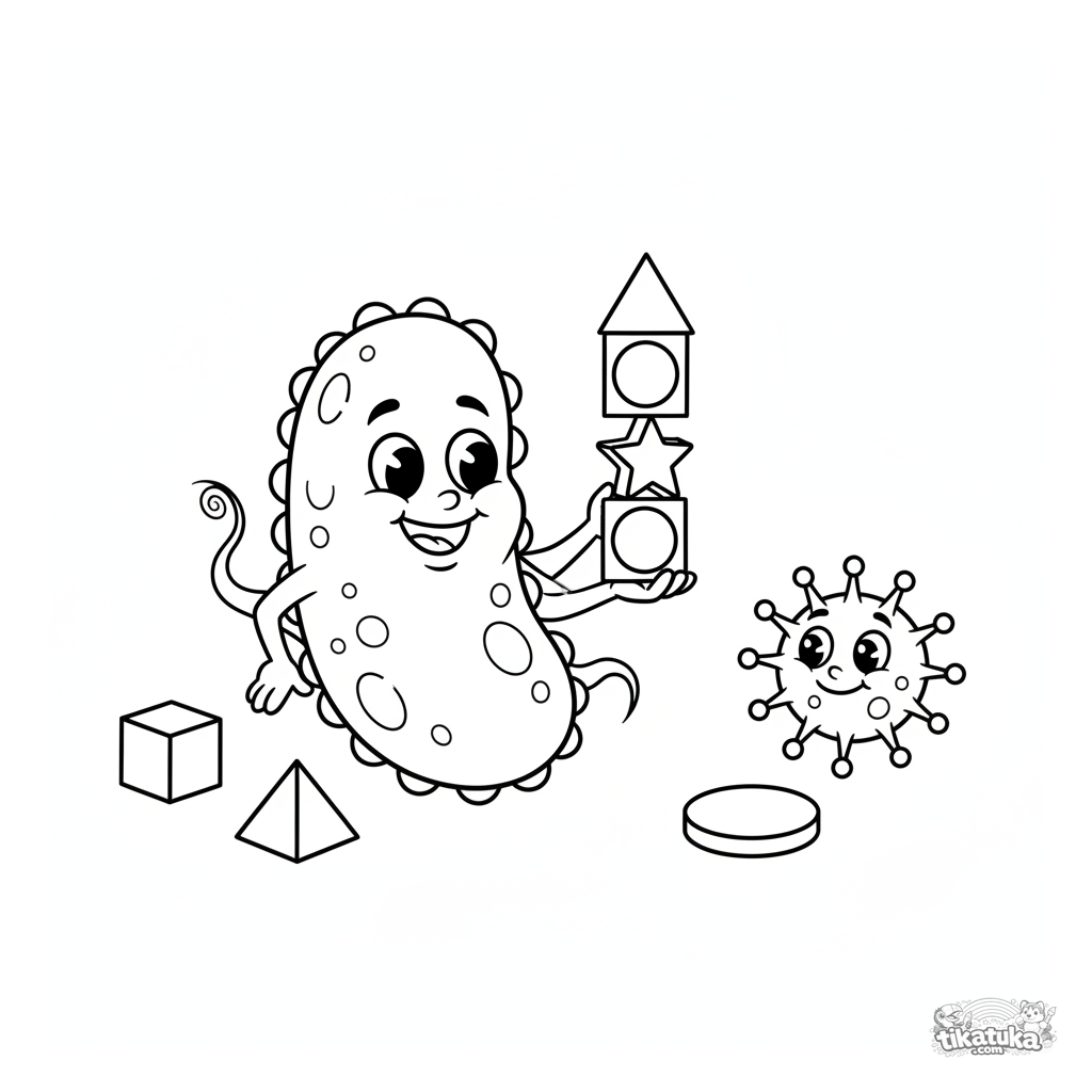 Ein Ausmalbild zum Thema Mikroben mit Detailgrad Einfach. Es passt für das Alter 2-5 Jahre, lässt sich gut zu Hause drucken und sofort online öffnen.