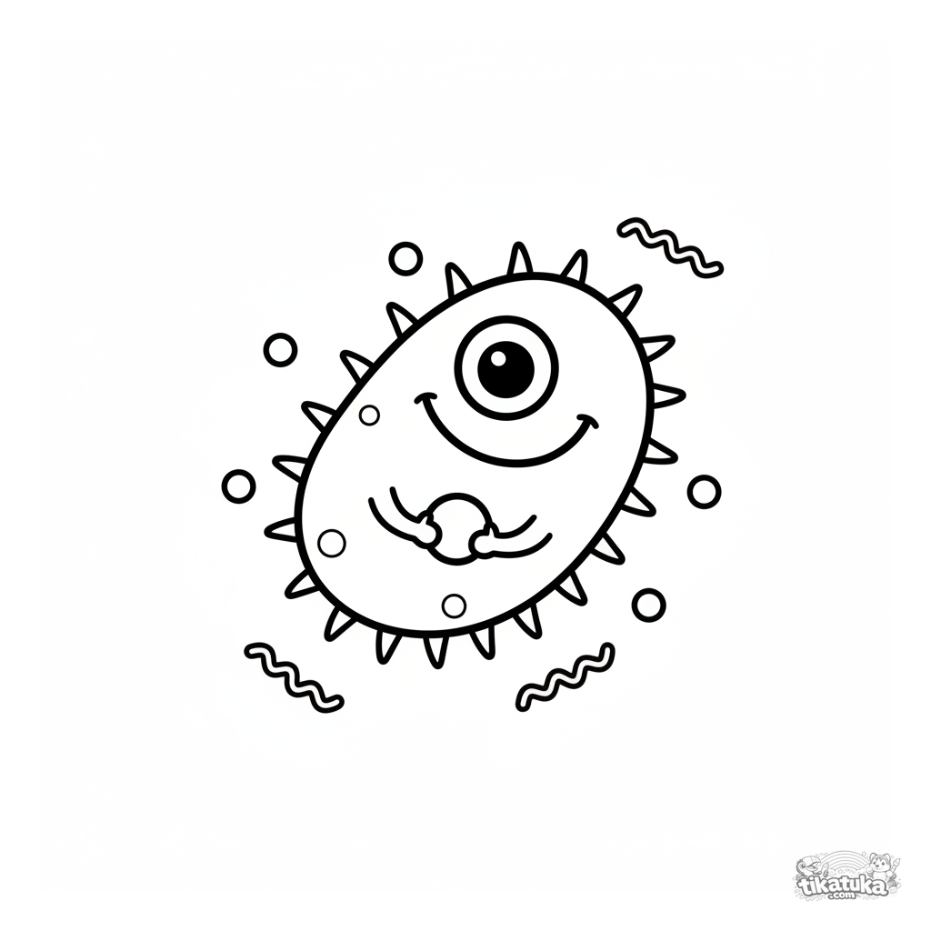 Ein Ausmalbild zum Thema Mikroben mit Detailgrad Einfach. Es passt für das Alter 2-3 Jahre, lässt sich gut zu Hause drucken und sofort online öffnen.