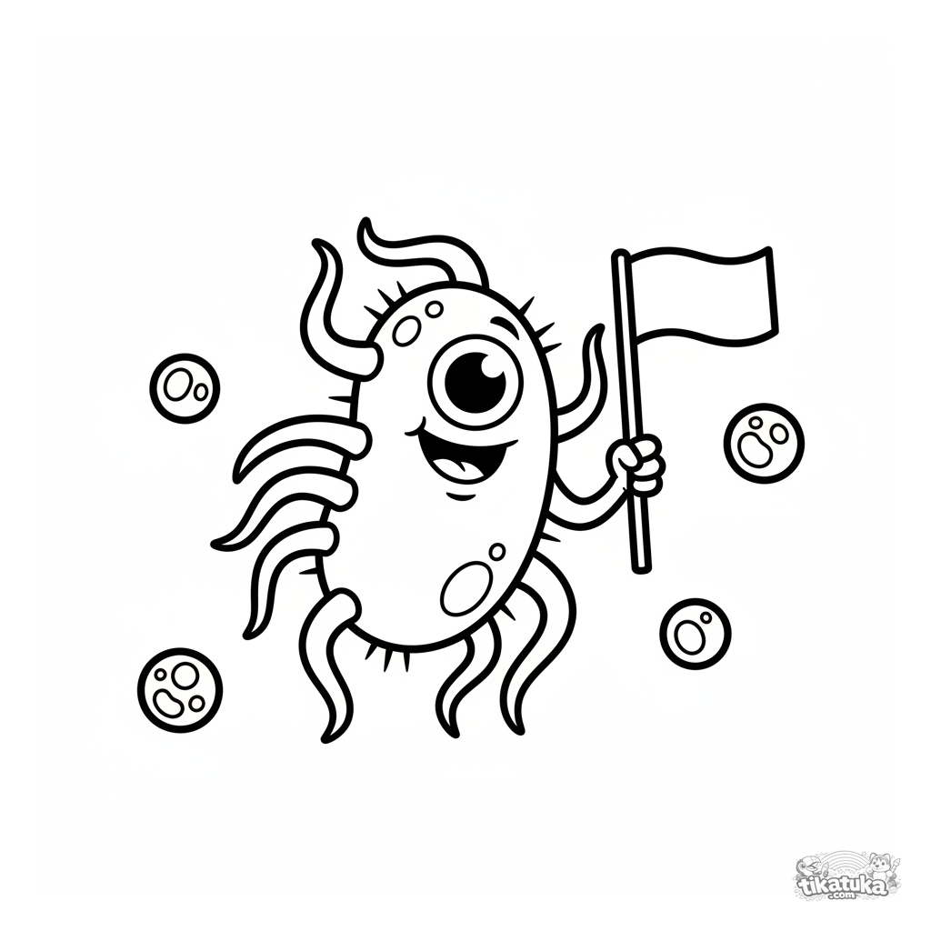 Ein Ausmalbild zum Thema Mikroben mit Detailgrad Einfach. Es passt für das Alter 2-5 Jahre, lässt sich gut zu Hause drucken und sofort online öffnen.