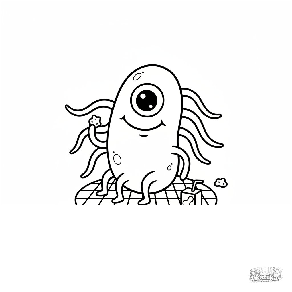Ein Ausmalbild zum Thema Mikroben mit Detailgrad Einfach. Es passt für das Alter 2-5 Jahre, lässt sich gut zu Hause drucken und sofort online öffnen.