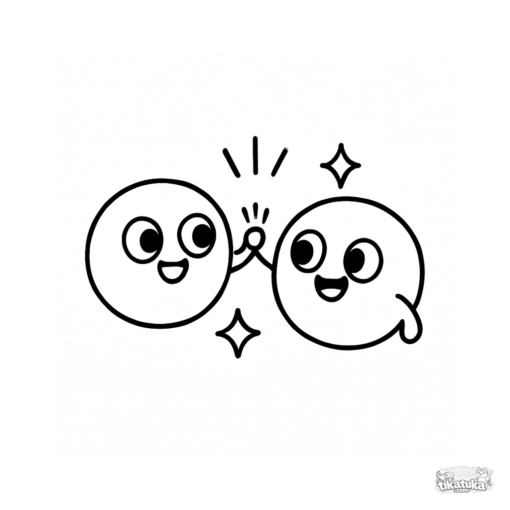 Ausmalbild für Kinder. Zwei fröhliche Diplokokken-Bakterien geben sich High-Five mit funkelnden Freudenfunken zwischen ihnen. Kostenlos herunterladen.