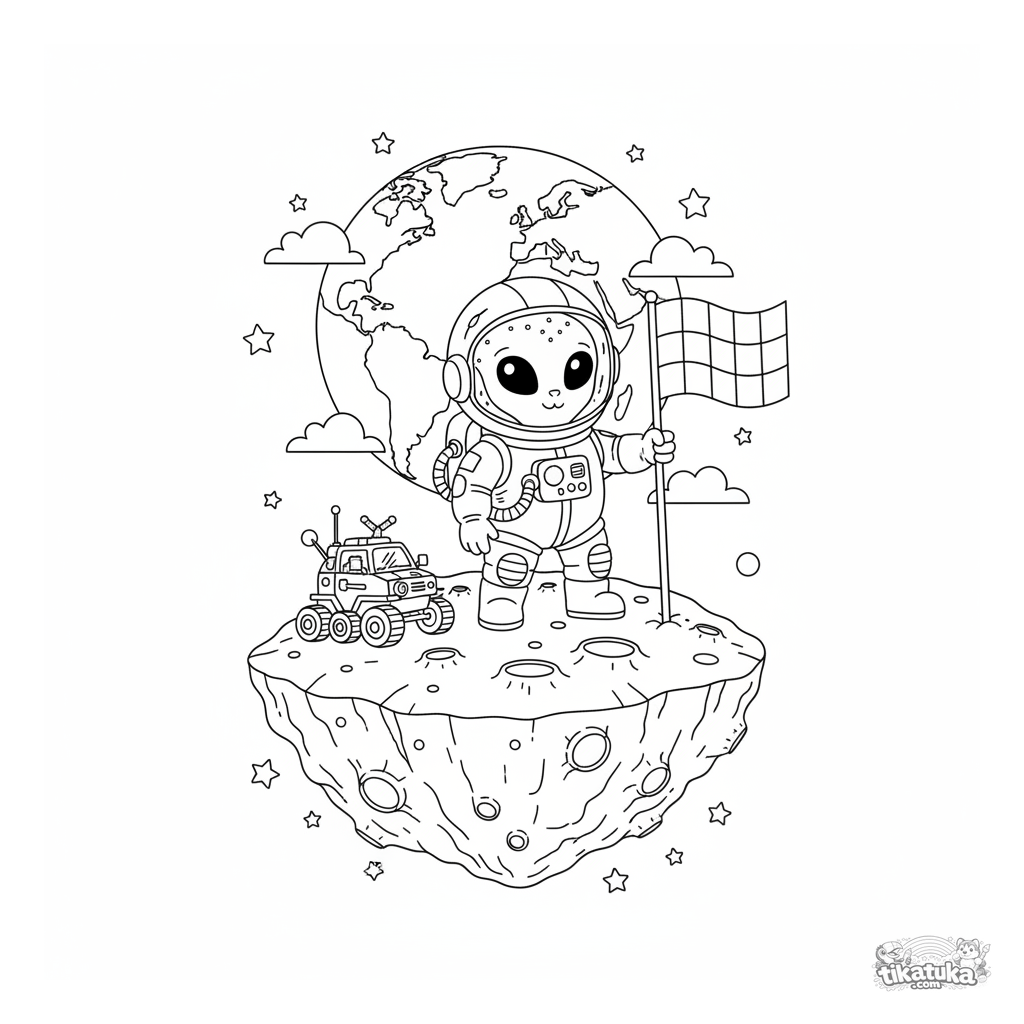 Ein Ausmalbild zum Thema Weltraum mit Detailgrad Schwer. Es passt für das Alter 7+ Jahre, lässt sich gut zu Hause drucken und sofort online öffnen.