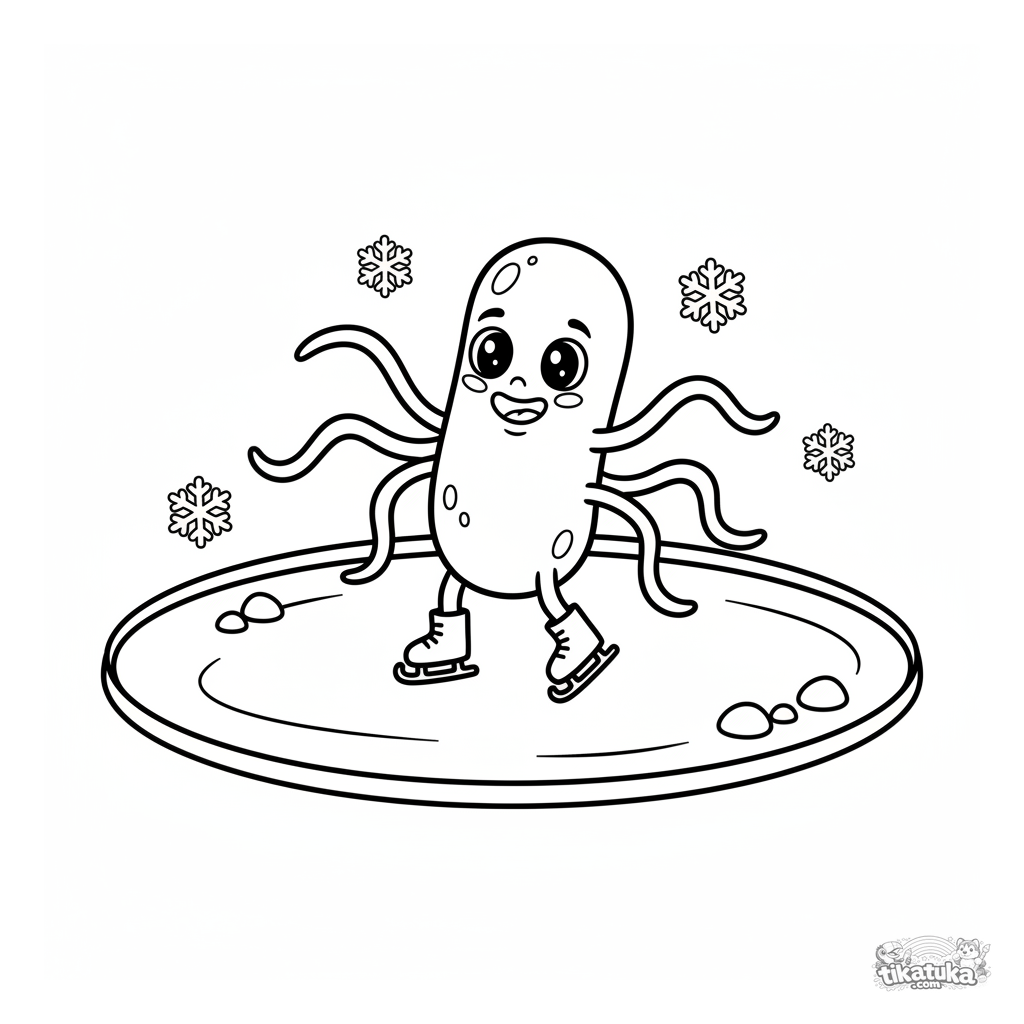 Einfaches Ausmalbild eines freundlichen Bakteriums, das Schlittschuh läuft. Für Kleinkinder von 2 bis 5 Jahren.