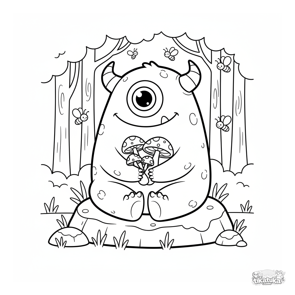 Ein Ausmalbild zum Thema Monster mit Detailgrad Mittel. Es passt für das Alter 4-6 Jahre, lässt sich gut zu Hause drucken und sofort online öffnen.