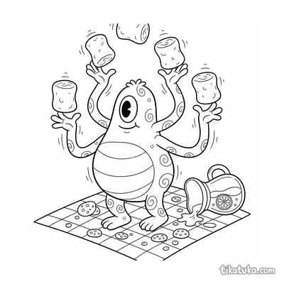 Ein Ausmalbild zum Thema Monster mit Detailgrad Mittel. Es passt für das Alter 4-6 Jahre, lässt sich gut zu Hause drucken und sofort online öffnen.
