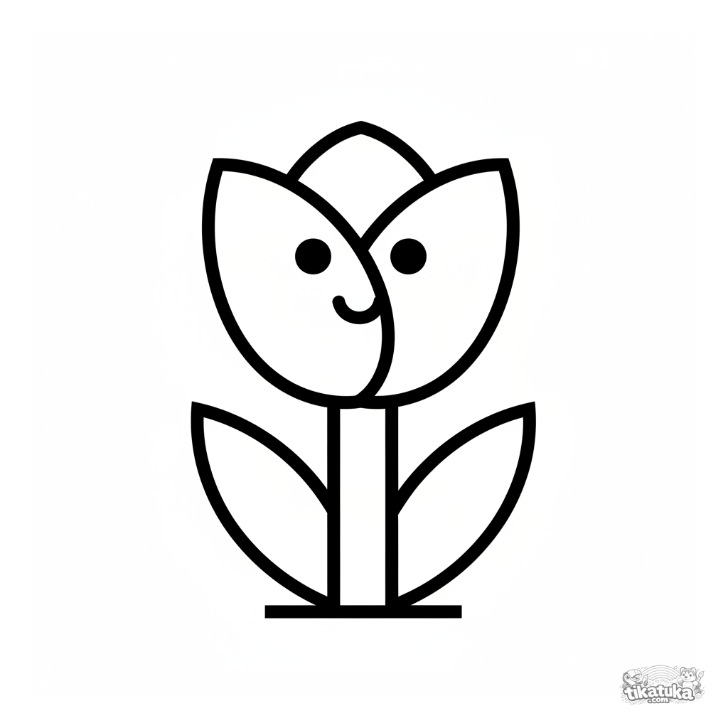 Sehr einfaches Ausmalbild für Kleinkinder 2-3: Eine Tulpe aus Kreisen und Rechtecken. Große geschlossene Formen.
