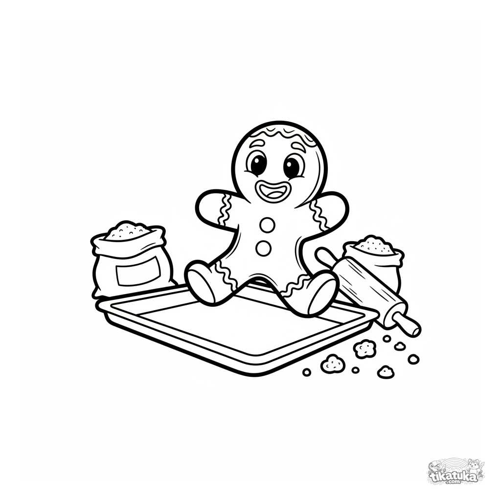 Lustiges Ausmalbild aus dem Lebkuchenmann-Märchen, das ihn bei der Flucht vom Backblech zeigt. Für Kleinkinder von 2-5 Jahren.