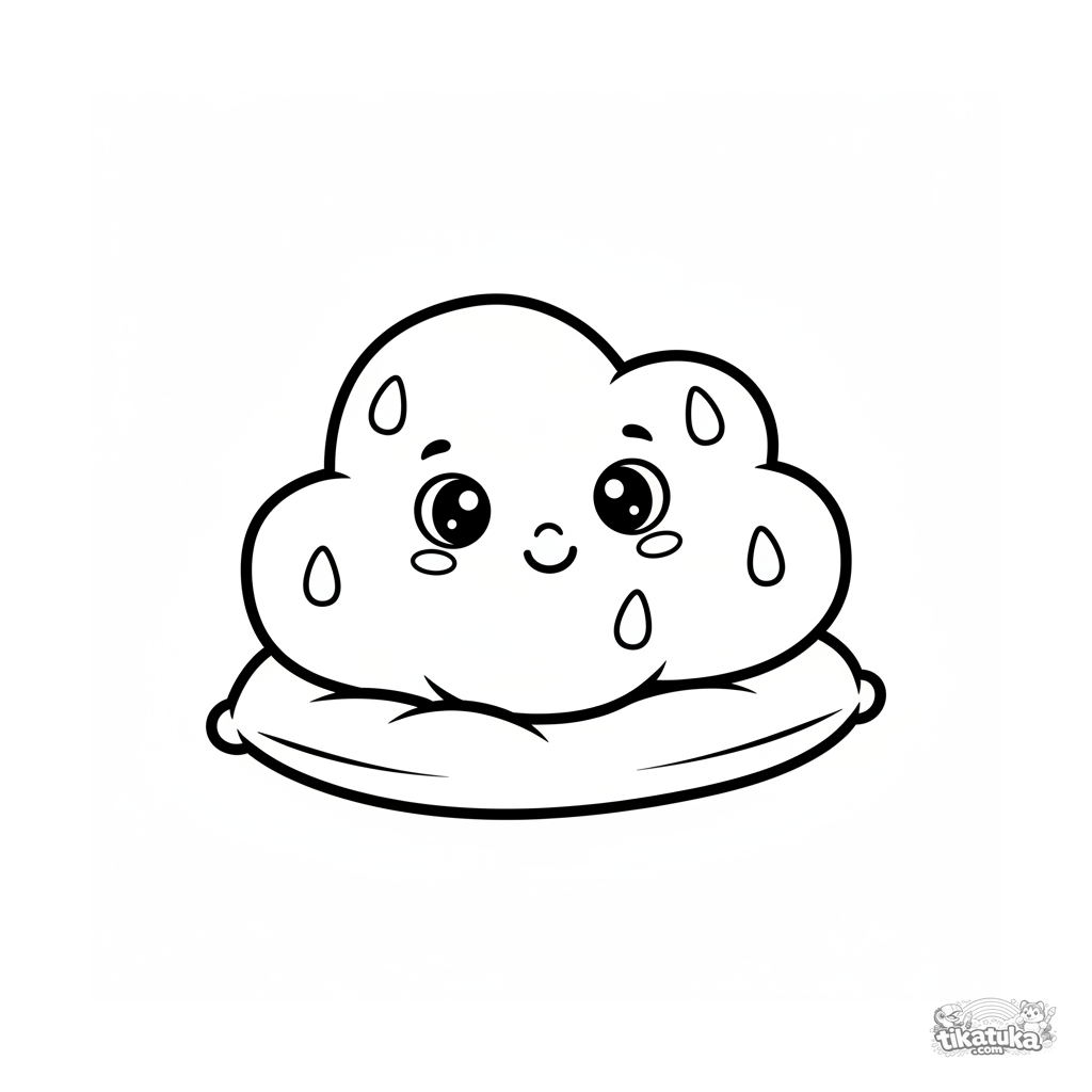 Kinder-Ausmalbild für 2-3 Jahre: ein lächelndes wolkenförmiges Kissen ruht auf einem anderen Kissen. Sehr wenige Linien, große geschlossene Flächen.