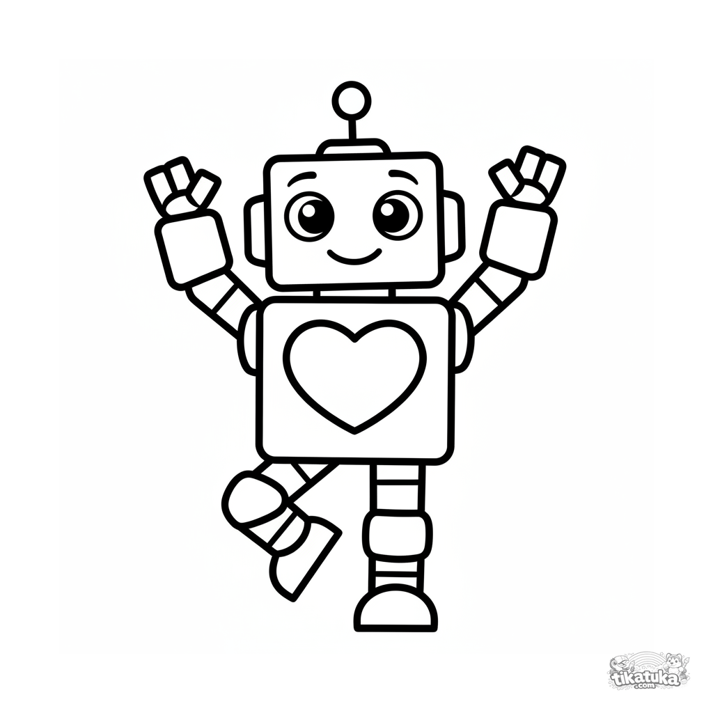Sehr einfaches Ausmalbild eines freundlichen Roboter-Superhelden, der winkt. Für Kleinkinder 2-3 Jahre. Große Formen, weite Ränder, minimale Details.