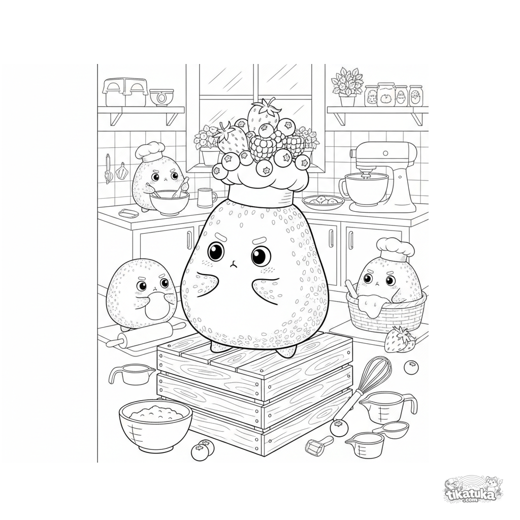 Ein Ausmalbild zum Thema Kawaii Essen und Boba mit Detailgrad Schwer. Es passt für das Alter 10+ Jahre, lässt sich gut zu Hause drucken und sofort online öffnen.