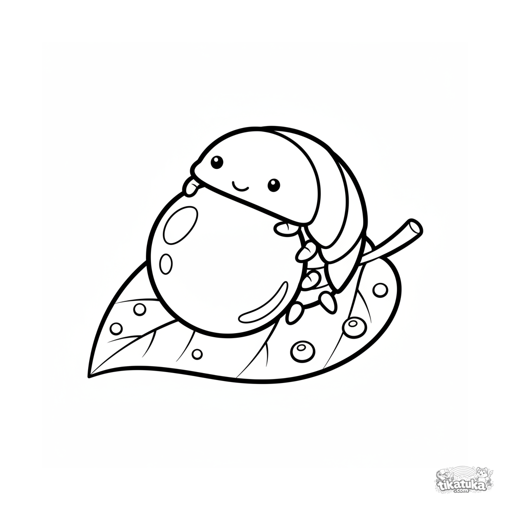 Einfaches Ausmalbild für Kleinkinder 2-3: Eine Kugelassel spielt mit einem Tautropfen wie mit einem Ball. Sehr einfache Formen.