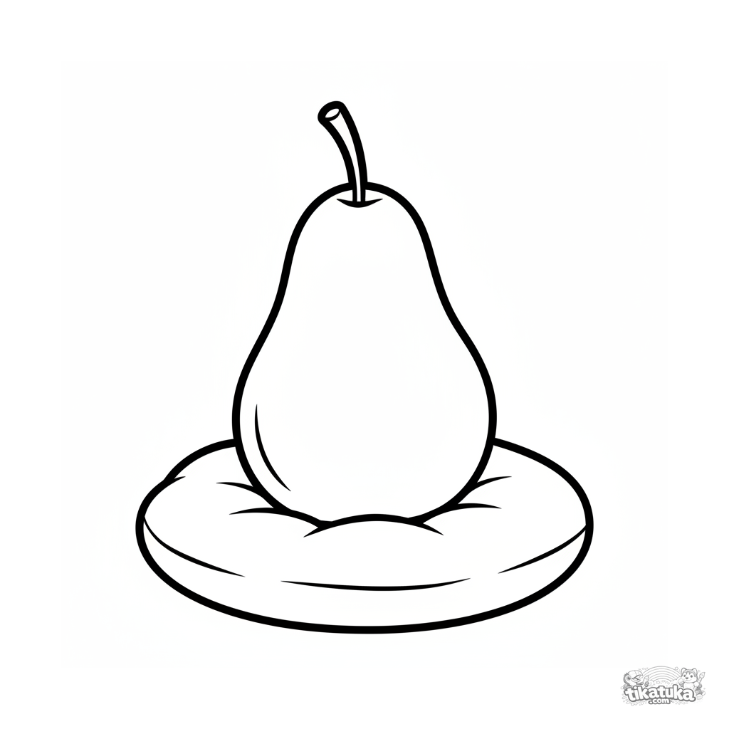 Einfaches Birnen-Ausmalbild für Kleinkinder. Ein klarer, erkennbarer Birnenumriss auf einem weichen Kissen. Perfekt für erste Malaktivitäten.
