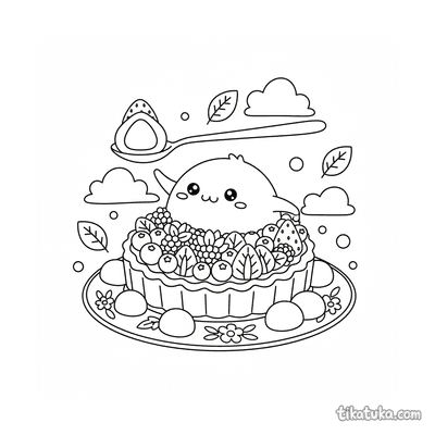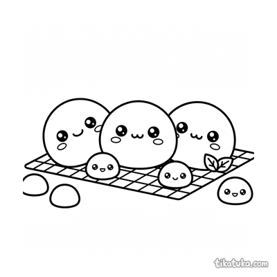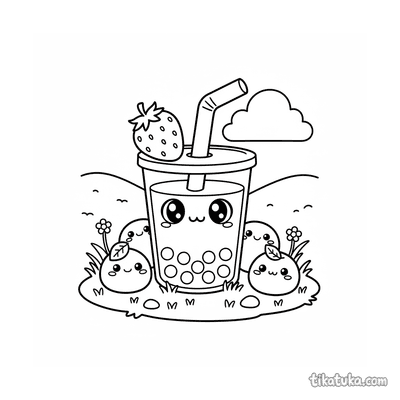 Ein Ausmalbild zum Thema Kawaii Essen und Boba mit Detailgrad Schwer. Es passt für das Alter 10+ Jahre, lässt sich gut zu Hause drucken und sofort online öffnen.