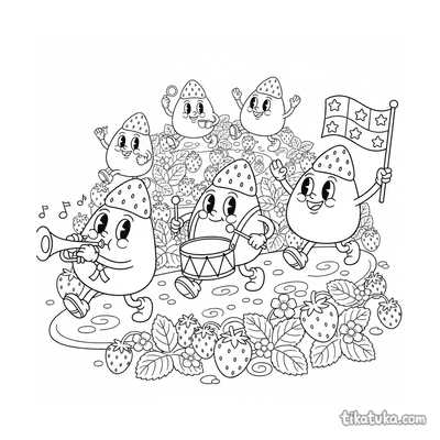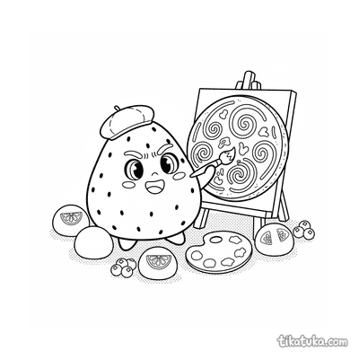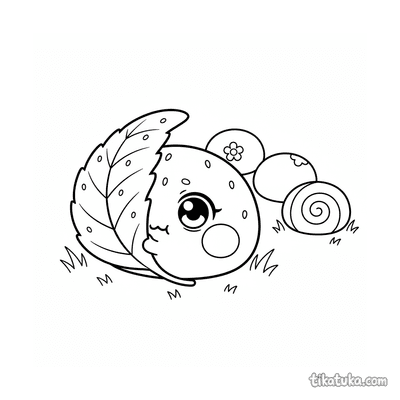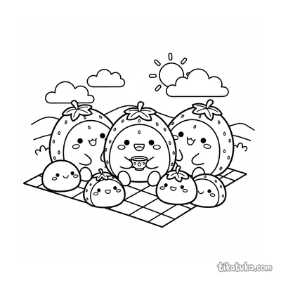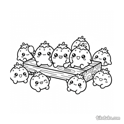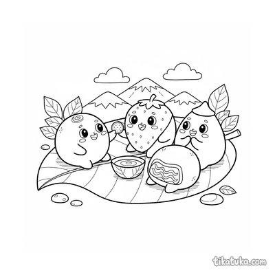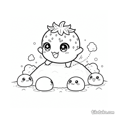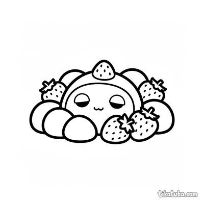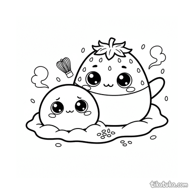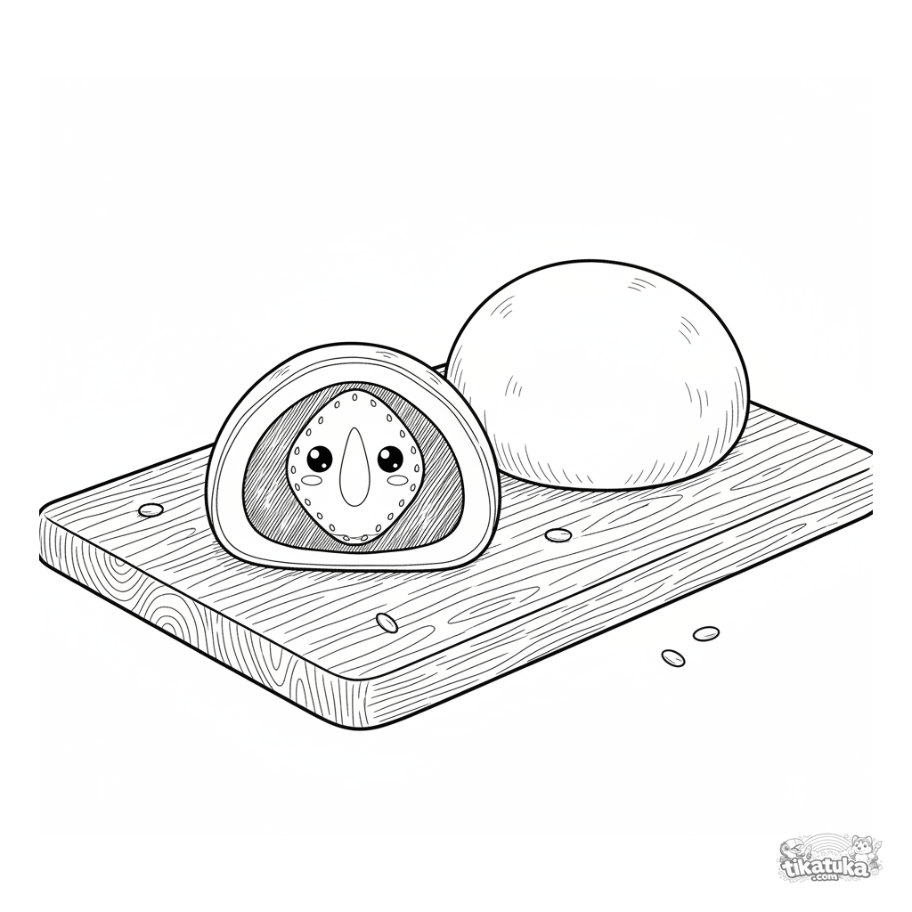 Detailliertes realistisches Ausmalbild für ältere Kinder 10-12: ein präziser Querschnitt eines Erdbeer-Mochi, der seine innere Struktur zeigt. Eine lehrreiche und schöne Szene.