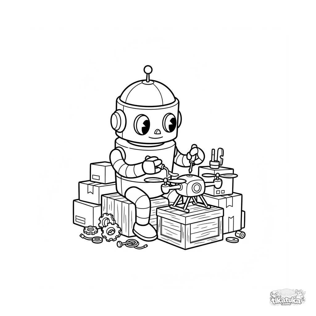 Ein Ausmalbild zum Thema Roboter mit Detailgrad Mittel. Es passt für das Alter 7-9 Jahre, lässt sich gut zu Hause drucken und sofort online öffnen.