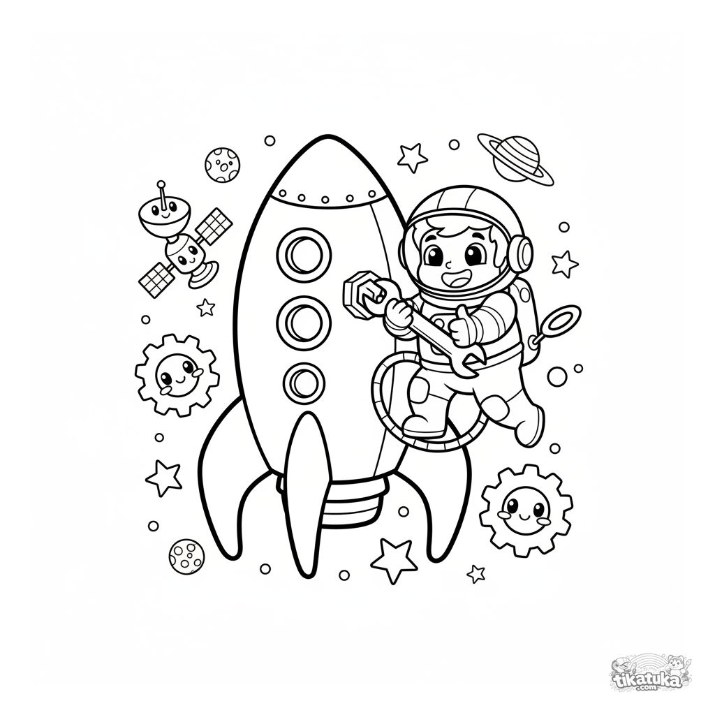 Ein Ausmalbild zum Thema Weltraum mit Detailgrad Mittel. Es passt für das Alter 5-8 Jahre, lässt sich gut zu Hause drucken und sofort online öffnen.