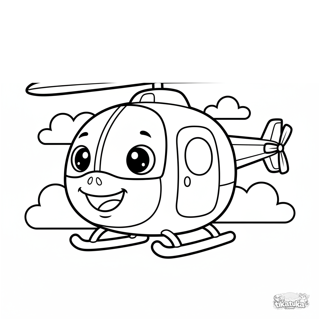 Ganz einfaches Ausmalbild eines lächelnden Cartoon-Hubschraubers für Kleinkinder 2-3 Jahre. Große Details, dicke Umrisse.