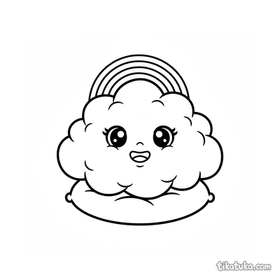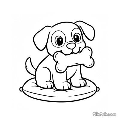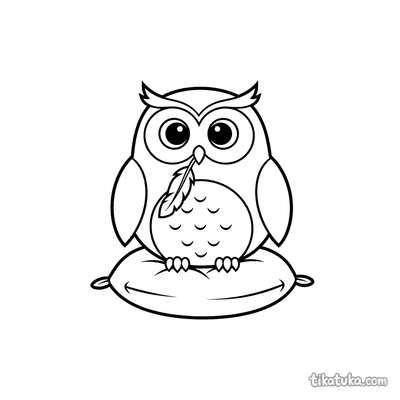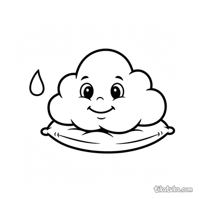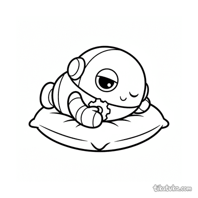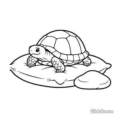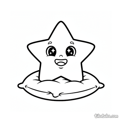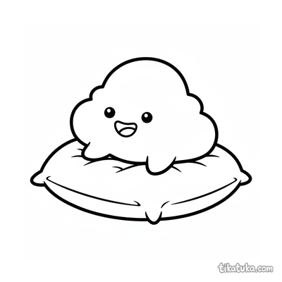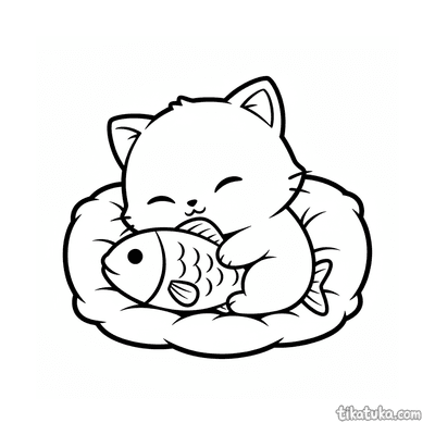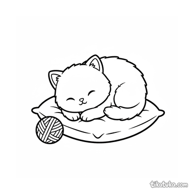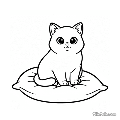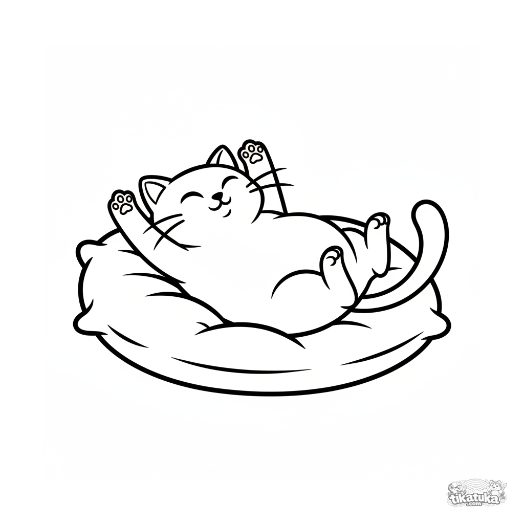 Ausmalbild für Kleinkinder: ein zufriedenes Kätzchen streckt sich auf einem Kissen. Vereinfachte, aber erkennbare Katzenformen sind ideal für erste Ausmalstunden.