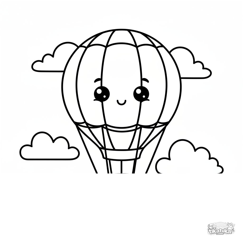 Sehr einfaches Ausmalbild eines Heißluftballons am Himmel für Kleinkinder (2-3 Jahre). Große, klare Formen, breite Ränder zum Ausmalen.