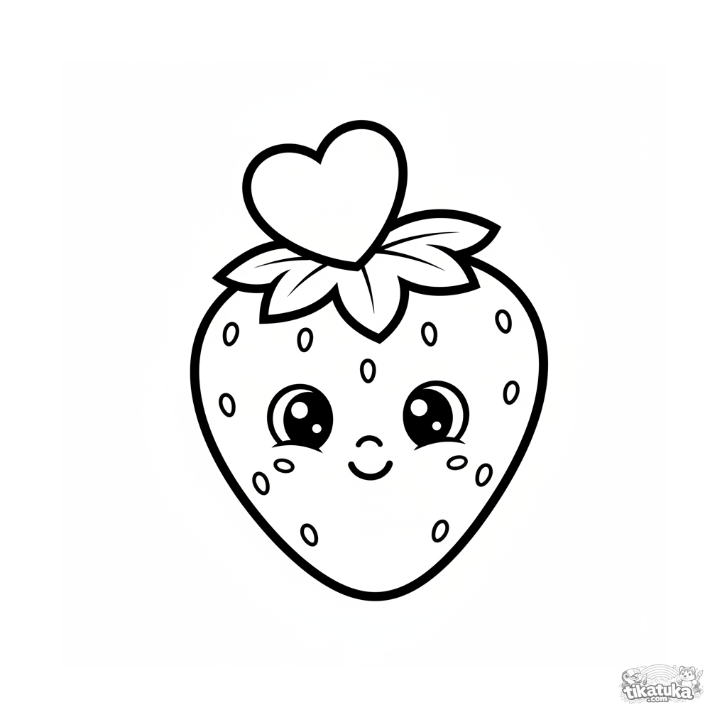 Ganz einfaches Ausmalbild mit einer großen, lächelnden Erdbeere für Kleinkinder 2-3. Dicke Umrisse, riesige Ränder, eine große Form.