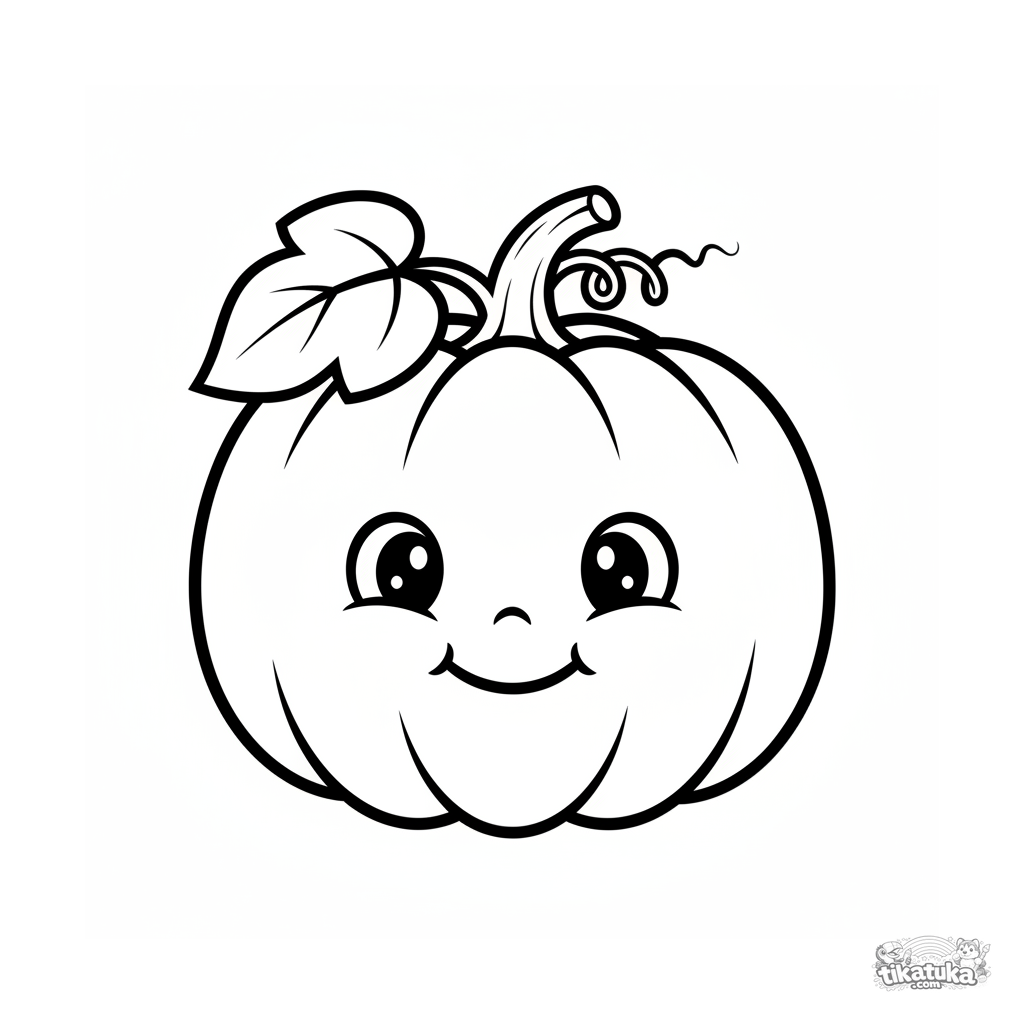 Ganz einfaches Ausmalbild für Kleinkinder 2-3: ein großer freundlicher Kürbis mit Gesicht. Große Formen, viel Freiraum zum Ausmalen.