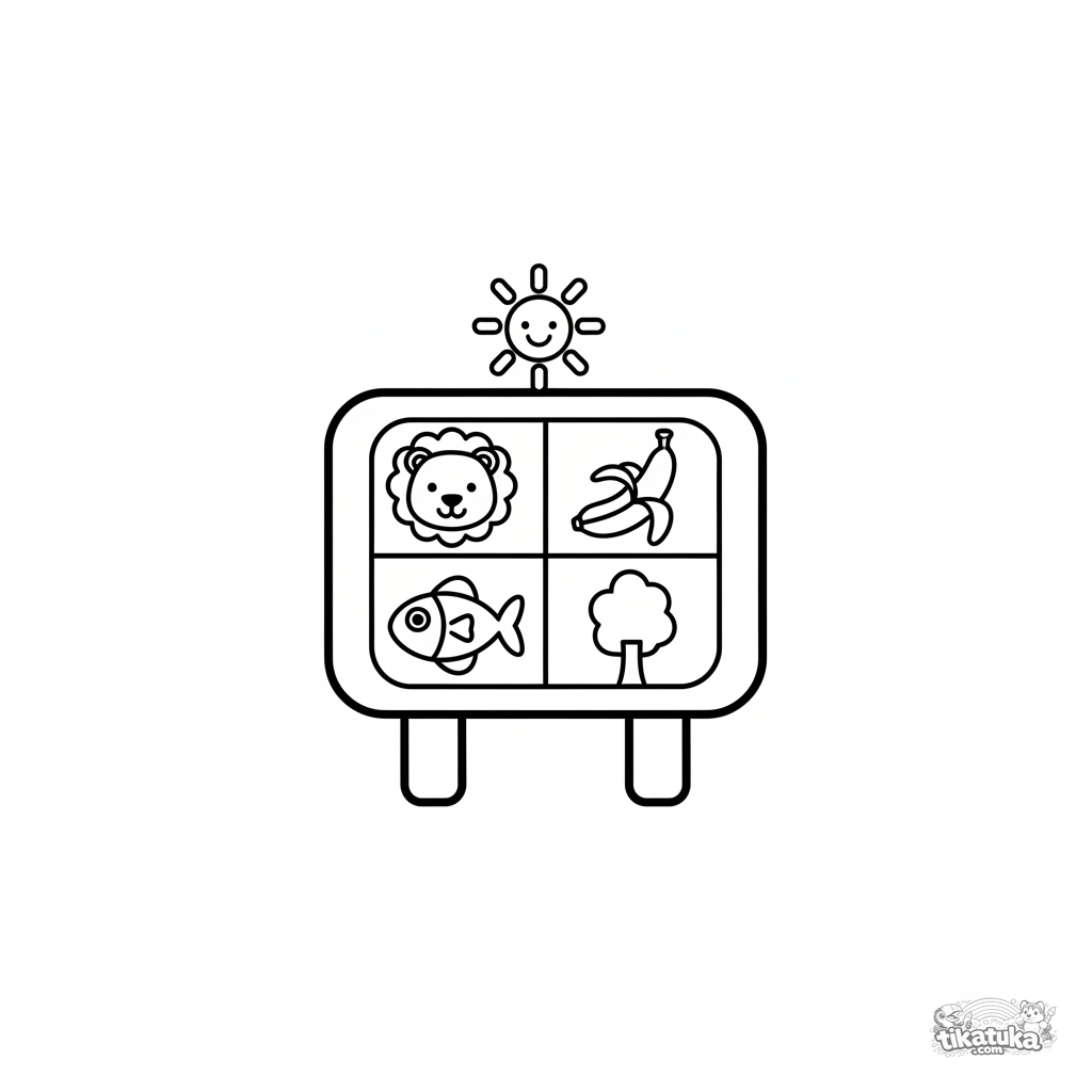 Ein Ausmalbild zum Thema Lernbilder mit Detailgrad Einfach. Es passt für das Alter 2-3 Jahre, lässt sich gut zu Hause drucken und sofort online öffnen.