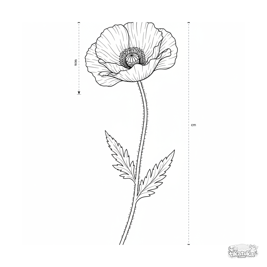 Detailliertes Ausmalbild für Kinder 10-12: eine botanische Skizze einer wilden Mohnblume. Perfekt für Naturliebhaber.