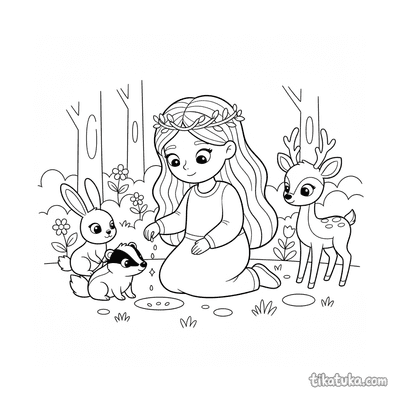 Ein Ausmalbild zum Thema Prinzessinnen mit Detailgrad Mittel. Es passt für das Alter 4-6 Jahre, lässt sich gut zu Hause drucken und sofort online öffnen.