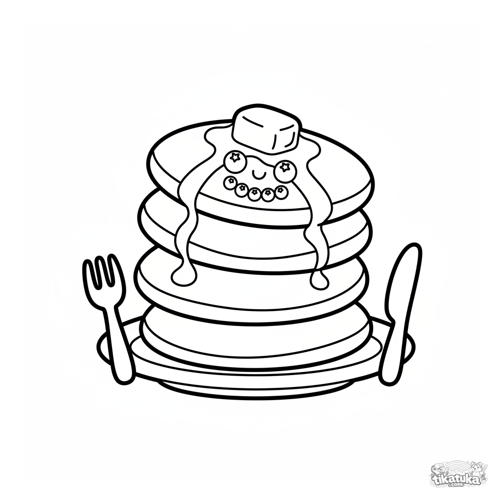 Lustiges Ausmalbild für Kleinkinder: ein Stapel Pfannkuchen mit einem lächelnden Gesicht. Riesige, einfache Formen für Kinder von 2-3 Jahren.