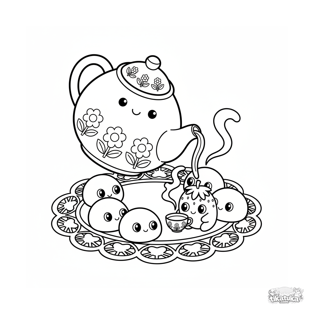 Ein Ausmalbild zum Thema Kawaii Essen und Boba mit Detailgrad Einfach. Es passt für das Alter 2-3 Jahre, lässt sich gut zu Hause drucken und sofort online öffnen.