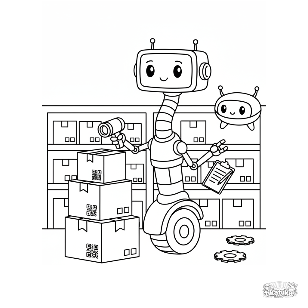 Ein Ausmalbild zum Thema Roboter mit Detailgrad Mittel. Es passt für das Alter 4-6 Jahre, lässt sich gut zu Hause drucken und sofort online öffnen.
