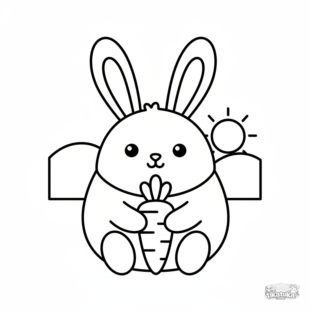 Ausmalbild für Kleinkinder 2-3 Jahre: ein großer runder Hase hält eine Karotte. Einfache große Formen, dicke Umrisse, perfekt für erste Malerfahrungen. Malen-nach-Zahlen-Ausmalbild für Kinder.