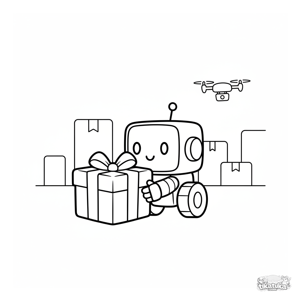 Ein Ausmalbild zum Thema Roboter mit Detailgrad Einfach. Es passt für das Alter 2-3 Jahre, lässt sich gut zu Hause drucken und sofort online öffnen.